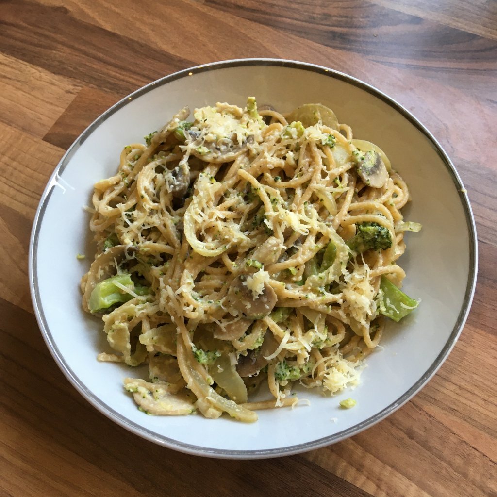 Dinner: Mushroom & Broccoli Quick Carbonara (recipe below)