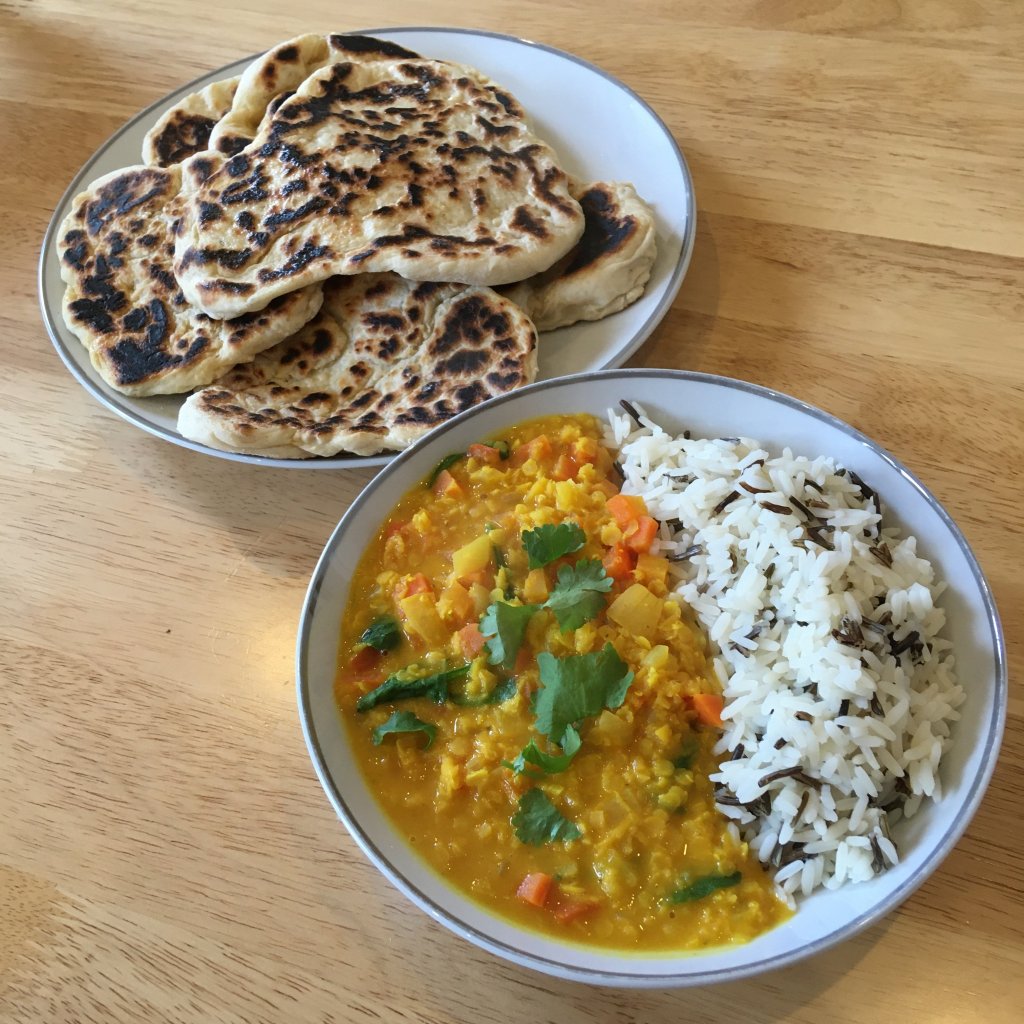 Dinner: Coconut & Lentil Curry with Homemade Naan Bread (curry recipe here, naan recipe here)