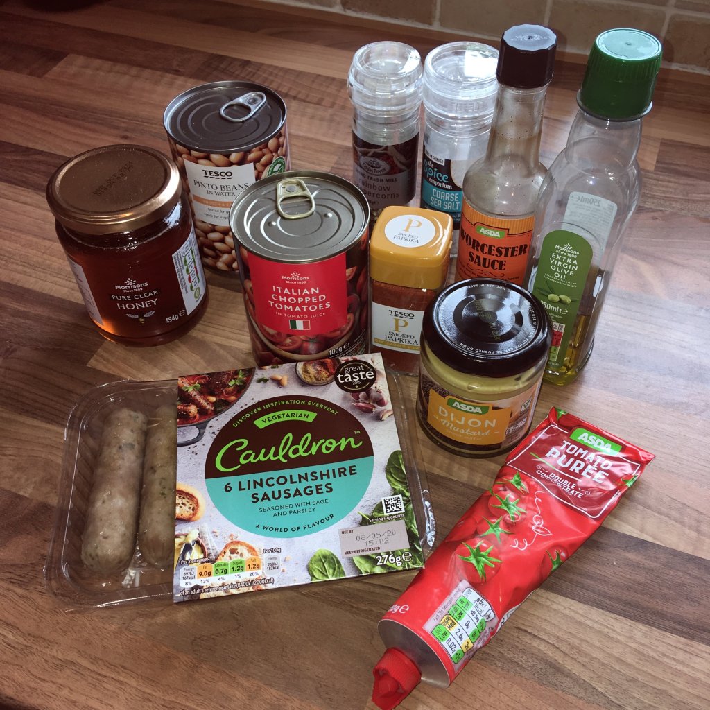 • 4 meat-free sausages (we used Cauldron Lincolnshire Sausages)