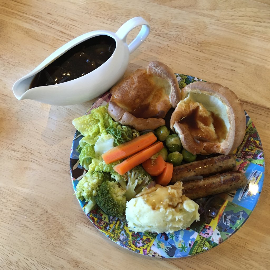 Dinner: Cauldron Lincolnshire Meat-Free Sausage & Mash with Homemade Yorkshire Puddings (recipe for Yorkie Puds below)