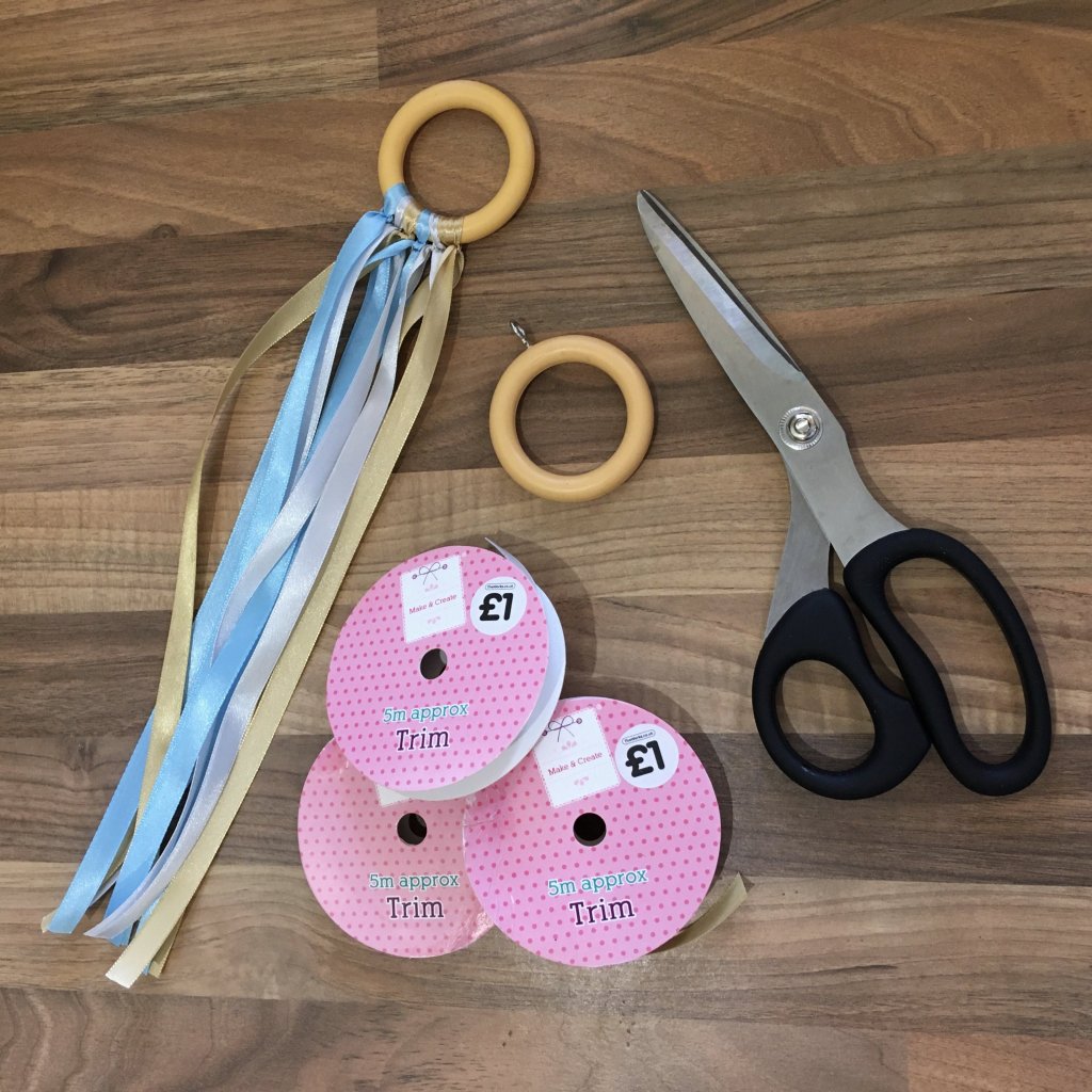 Another favourite with all the little ones at baby group was the ribbon ring. All babies seem to have a ‘thing’ about labels, and these hand-crafted wonders seem to satisfy that need!