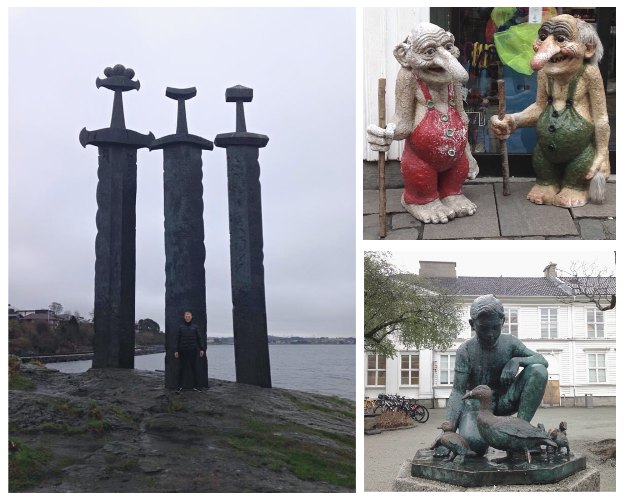 If you fancy a long walk through the city, you can visit “Sverd i fjell” (that’s ‘Swords in Rock’ to you and me) on foot. On our first visit, we decided to do this walk aided only by Google Maps. It took much longer than the hour-or-so we estimated, and paired with the urban landscape and persistent drizzle, it was not the scenic stroll we had hoped it would be. When we eventually got there, there was no coffee shop or toilet facility open within reasonable distance (it was out-of-season for the ice cream shop when we visited in April). With that, we took the best pictures we could in the soggy circumstances, then headed straight to the nearest public bus stop to get us back to the port, pronto! Next time we would take bus route 6 from Jernbaneveien to Madlamark Kirke, then walk the final 10 minutes. Buses run regularly and are inexpensive. In summary, Sverd i Fjell is worth doing, but the walk is not, so do yourself a favour and take the bus!