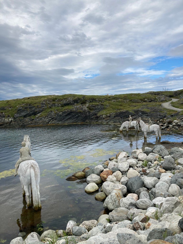 If you walk far enough along the coast path, you will reach a mesmerising sculpture of horses in water, created by artist Jason DeCaires Taylor. It’s approximately 5km from the cruise terminal, heading North along the coastline of the mainland. It takes an hour each way at a leisurely pace, though you may want to allow extra time for photos and a picnic along the way. To read more about the meaning behind the artwork, Visit Norway has an article all about it here.