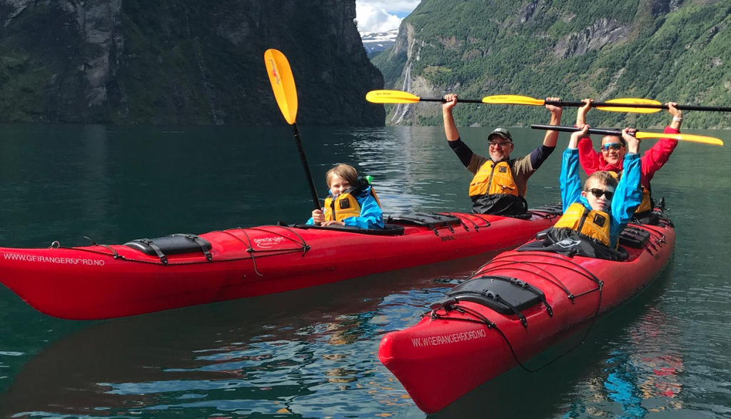 If you have kids 8 years and over, I recommend an afternoon of family kayaking. The water is so still at the end of the fjord, its like paddling on a serene lake, so no fear of choppy water, getting lost at sea or (heaven forbid) capsizing the boat! Kayaks seat 2 (1 adult & 1 child or 2 adults) and can be hired by the hour or as part of a group tour. If you are not familiar with kayaking, I’d recommend the Discover Kayaking tour which takes 2.5 hours. For more information and to book, visit the Geiranger Fjord Service website.