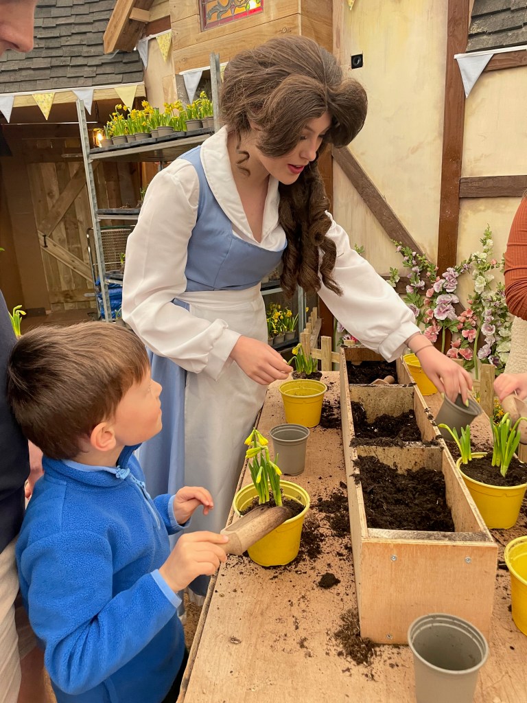 One of my favourite unique springtime activities included in the ticket price was potting miniature daffodils. There were 4 perfectly designed work benches set up for the activity, complete with sturdy wooden steps (for helping little ones reach), soil troughs and wooden trowels. The princess or storybook character of the day (it was Belle from Disney’s Beauty and the Beast when we visited) would then rotate around the different work areas talking to the children, asking them about their Easter and helping them pot their flowers in a fun and natural way. Belle was charming, remembered our son’s name throughout the event and made him feel like he had really done gardening with a Disney character. Core memory made! As a parent, it was also refreshing to take home a quality souvenir that wasn’t edible and laced in sugar!