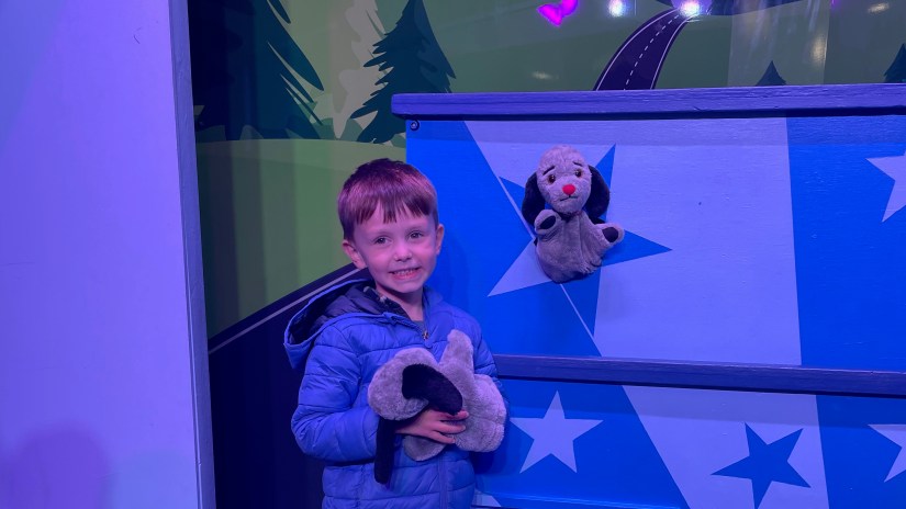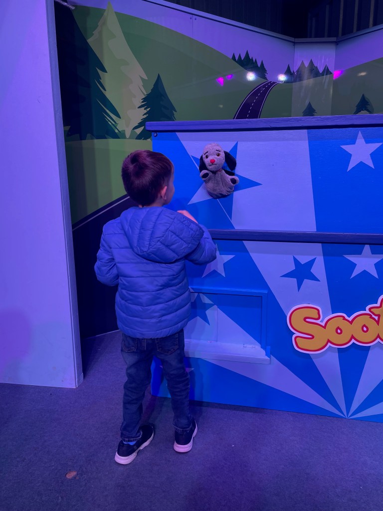 A real highlight of the day was the chance to meet our pals, Sooty and Sweep. The meet & greets are held in an adorable little theatre by the Sooty Hall Of Fame and Soo’s Cafe. Here, episodes of the more modern Sooty shows are playing to keep everyone amused until it is time. When the moment arrives, the curtains are drawn and visitors are invited to form an orderly queue, ready to take their own photos (and in Teddy’s case, give everyone a kiss) on stage. It is so well thought out – there is even a host on hand to encourage gentle yet playful interaction with each new friend. It is worth noting that there are a few small steps up on to the stage (as shown in the picture below).
