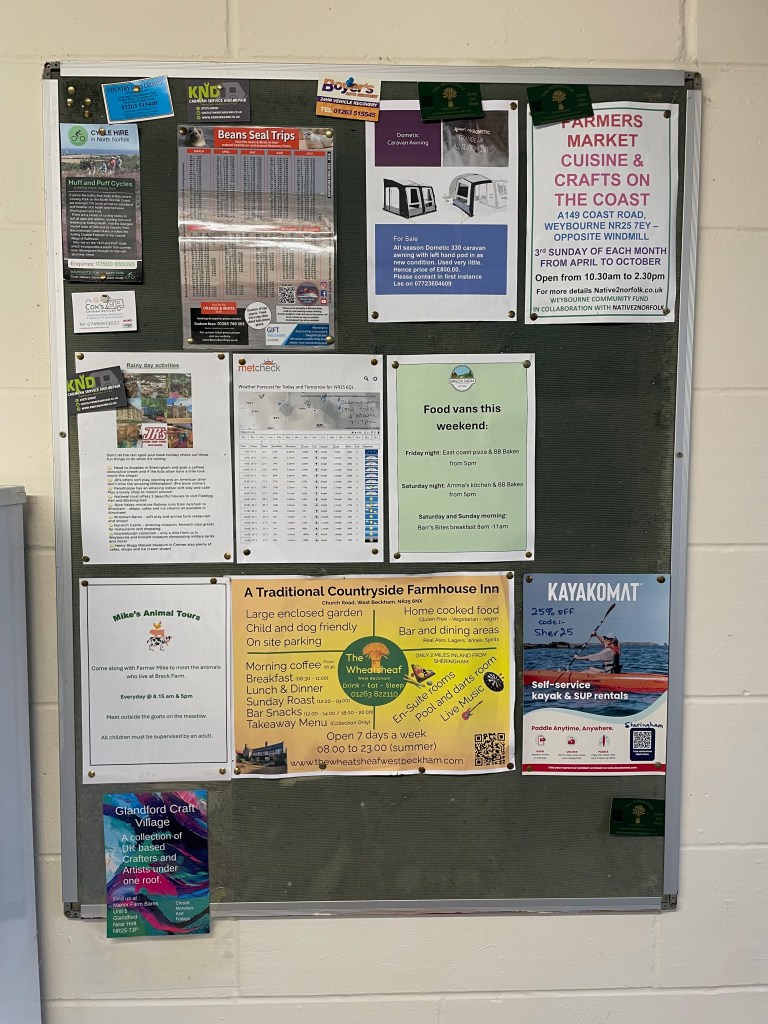 This is where Breck Farm really surprised us – they had everything you could ever need for a short or longer stay. Plenty of clean toilets, showers and washing-up stations were great, but I was surprised to see a self-service laundry facility (washer & drier), freezers for ice blocks and mobile device charging lockers too. There was also a notice board displaying a current 48-hour weather forecast, local tide times for the nearby beach, local places to eat and details of any food trucks that would be on site at the weekend (more on that later). There were loads of huge bins for general waste and recycling on each field, plus lots of fire rings which you could help yourself to if you wanted a camp fire on the two tent pitch fields. In these two fields, there were also a couple of easily-accessible fire safety stations with water-butts and buckets in case of emergency.