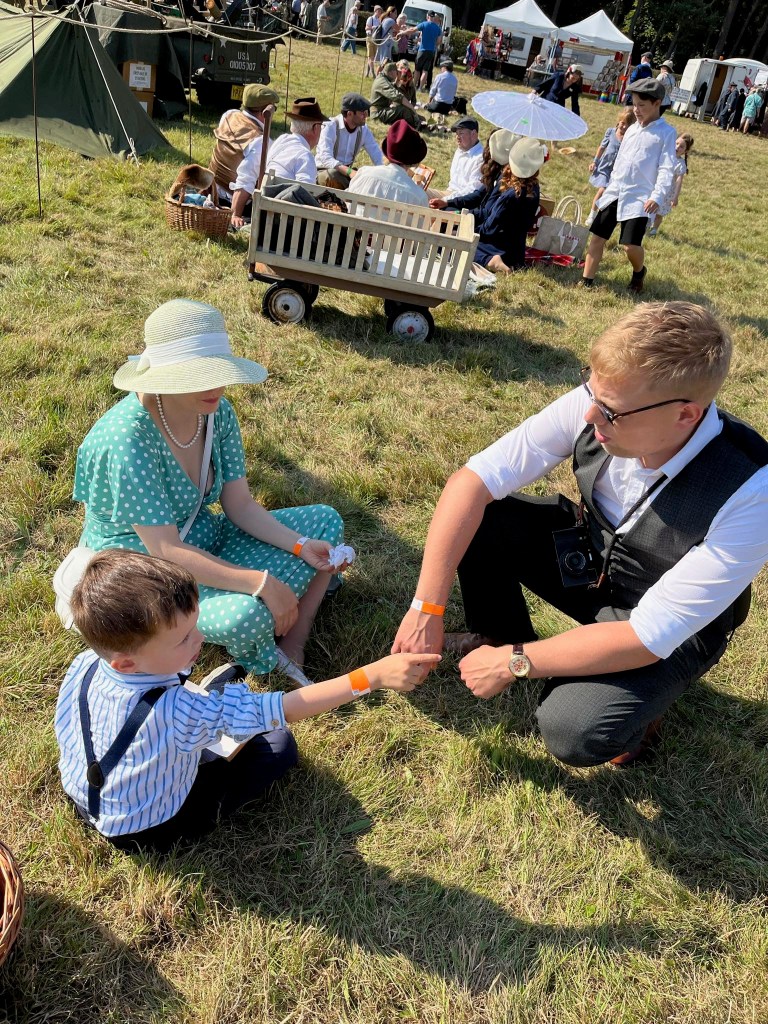 Admittedly, it is my mother’s passion first and foremost. She books the weekend off work every year without fail and keeps everything crossed for good weather! For the last 2 years we have joined her with our son (aged 3 and 4 at the time), and we have all had a blast! We all enjoy getting dressed up in our retro finery, listening to the musical acts, enjoying delicious food, browsing the stalls and attempting to fill up our ration books with stamps!
